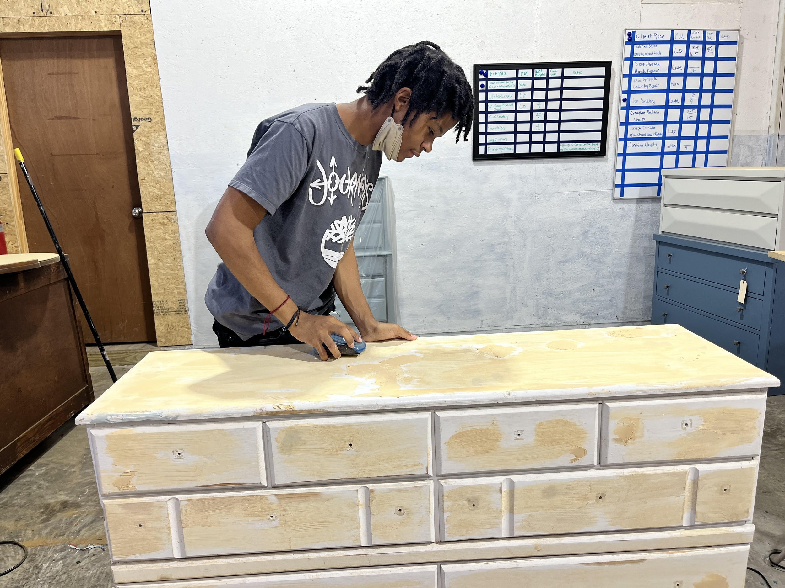 Through the SYEP, Anthony joined us as a full time shop assistant. He swept saw dust and made quite a bit himself. He took hardware off, polished it, and put it back on again. He filled holes and drilled holes. He disassembled a couple of pieces of furniture and broke down many boxes. He did a lot of painting and rolling. Thanks to Anthony’s hard work and great support, we finished five or six pieces of furniture for our new showroom that we probably wouldn’t have otherwise.